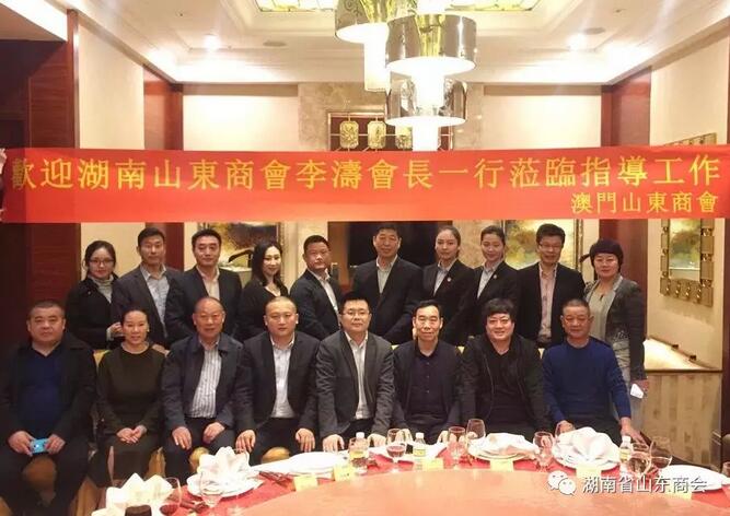 2018年3月9日下午,商会党委书记、会长李涛带领卜贻学、常务副会长刘俊、门金民、尹承宝、副会长唐锦昌、外联部部长吴振凤、接待部部长付志银一行走访参观澳门山东商会,受到了澳门山东商会会长魏承波、副会长秦志坚等商会领导的热烈欢迎。并进行了餐叙,互相交流经验,李会长对澳门山东商会的热情接待表示感谢,表示,两地商会将共同发展、加强联谊、互助共赢。