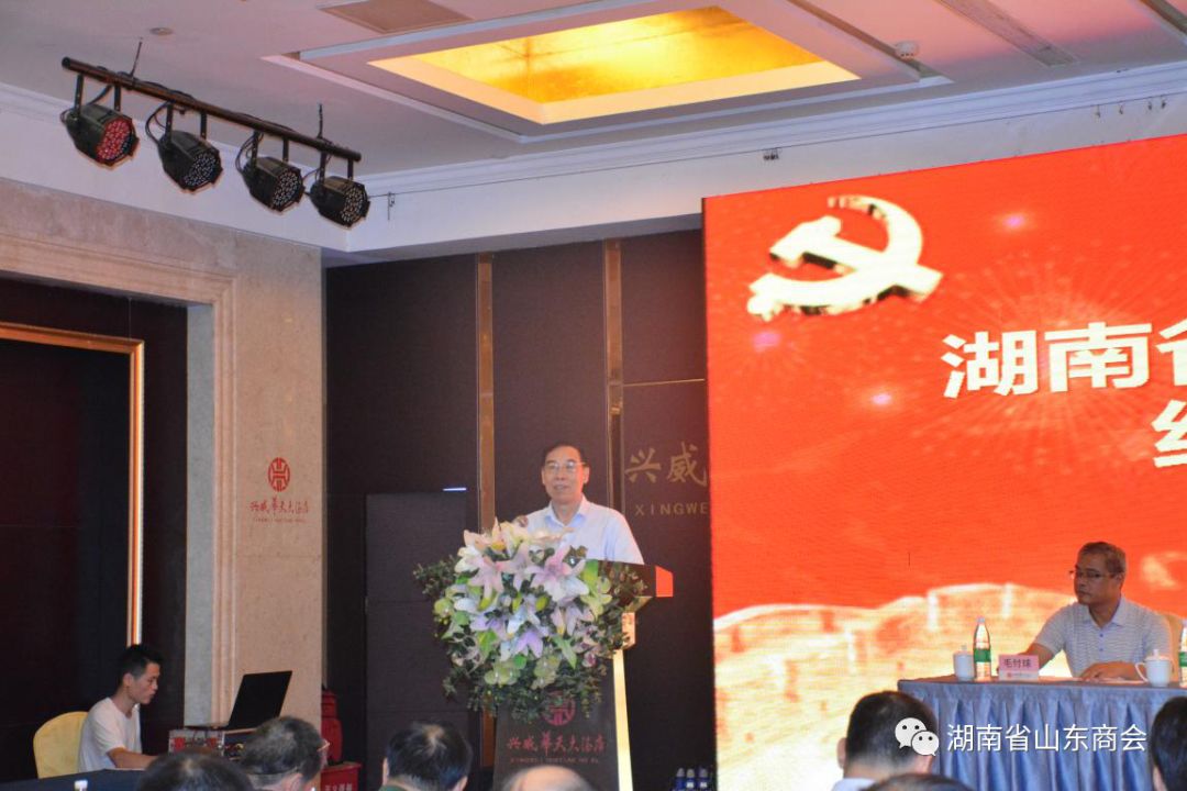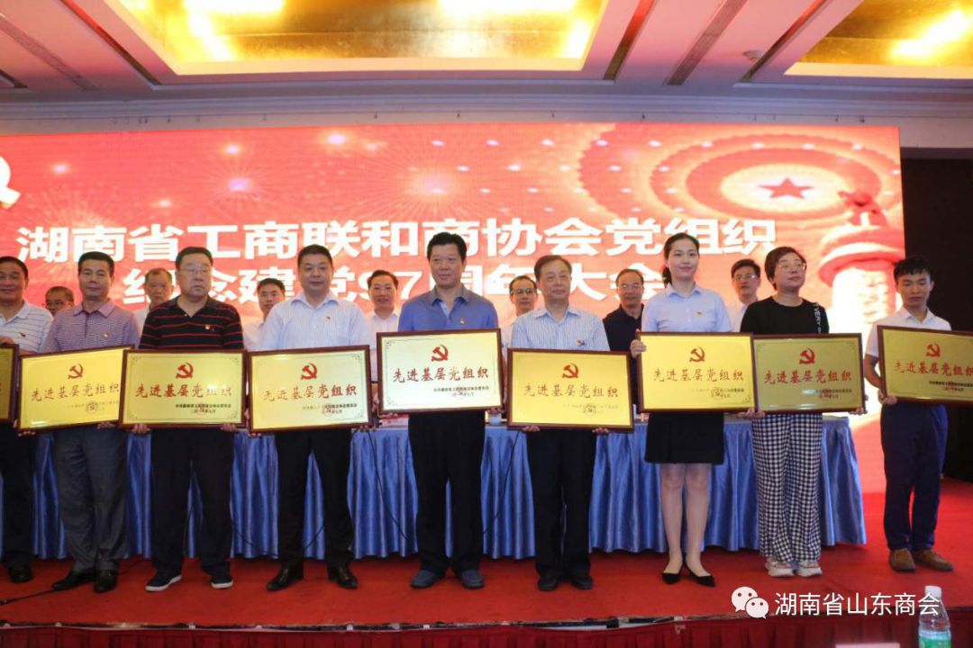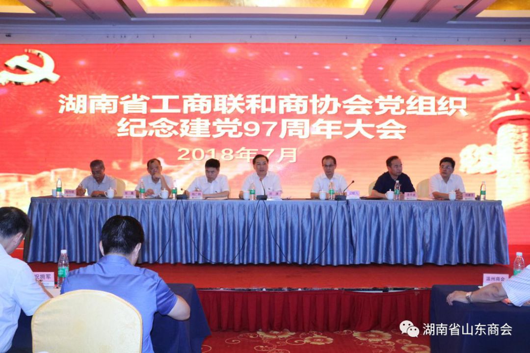 2018年7月5日上午,湖南省工商联和商协会党组织纪念建党97周年大会在长沙兴威华天隆重举行。省委统战部副部长、省工商联党组书记、省委“两新”工委副书记陈潇,省工商联党组成员、副主席、商协会党委书记吴曙光,省工商联党组成员、副主席杨广林、漆平波等领导出席了大会。中共湖南省山东商会党委书记、会长李涛,副书记、秘书长卜贻学,执行会长柳正明,理事白凌,会员李彦霖应邀参加了大会。
